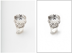 INCORRECT because the jewel cannot be seen in its entirety. CORRECT, the jewel can be seen entirely and it is on a white background.